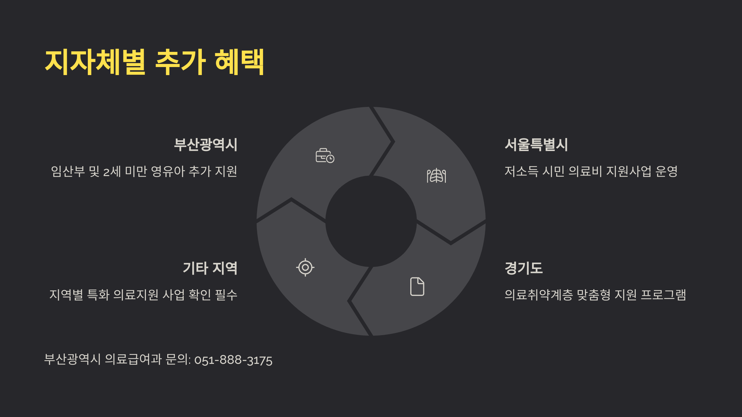 부산시는 '의료비 걱정 없는 도시'를 슬로건으로, 의료비 상담센터를 통해 병원 연계부터 본인부담금 조정까지 맞춤형 서비스를 제공해요. 이처럼 지역복지 정책도 꼼꼼히 살펴보는 게 매우 중요하답니다.