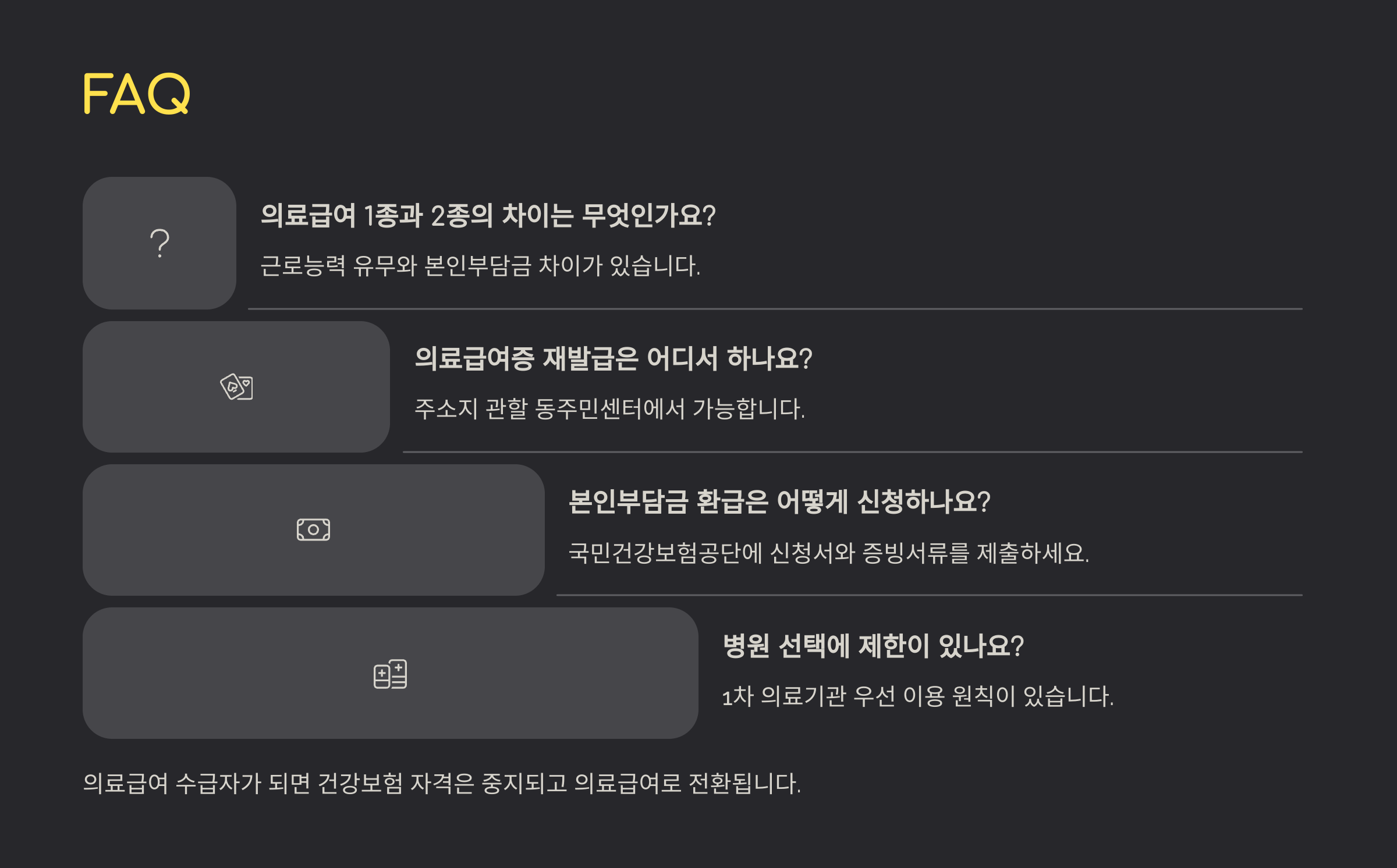 Q1. 의료급여 1종과 2종 차이가 뭐예요?