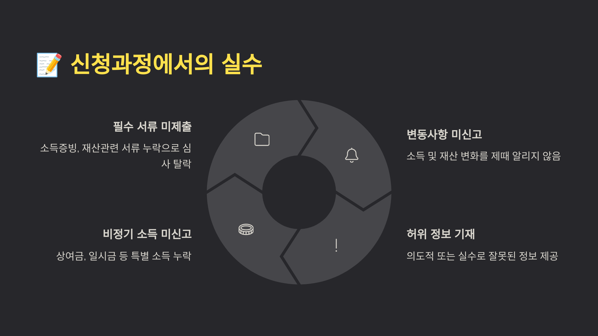 예를 들어, 예금 잔액이나 보험 증서 등을 누락하거나, 소득 자료를 최근 3개월치 이상 준비하지 않으면 “자료 미비”로 심사 보류나 탈락이 될 수 있어요. 담당 공무원이 알아서 채워주지 않기 때문에 본인이 꼼꼼히 챙겨야 해요.
