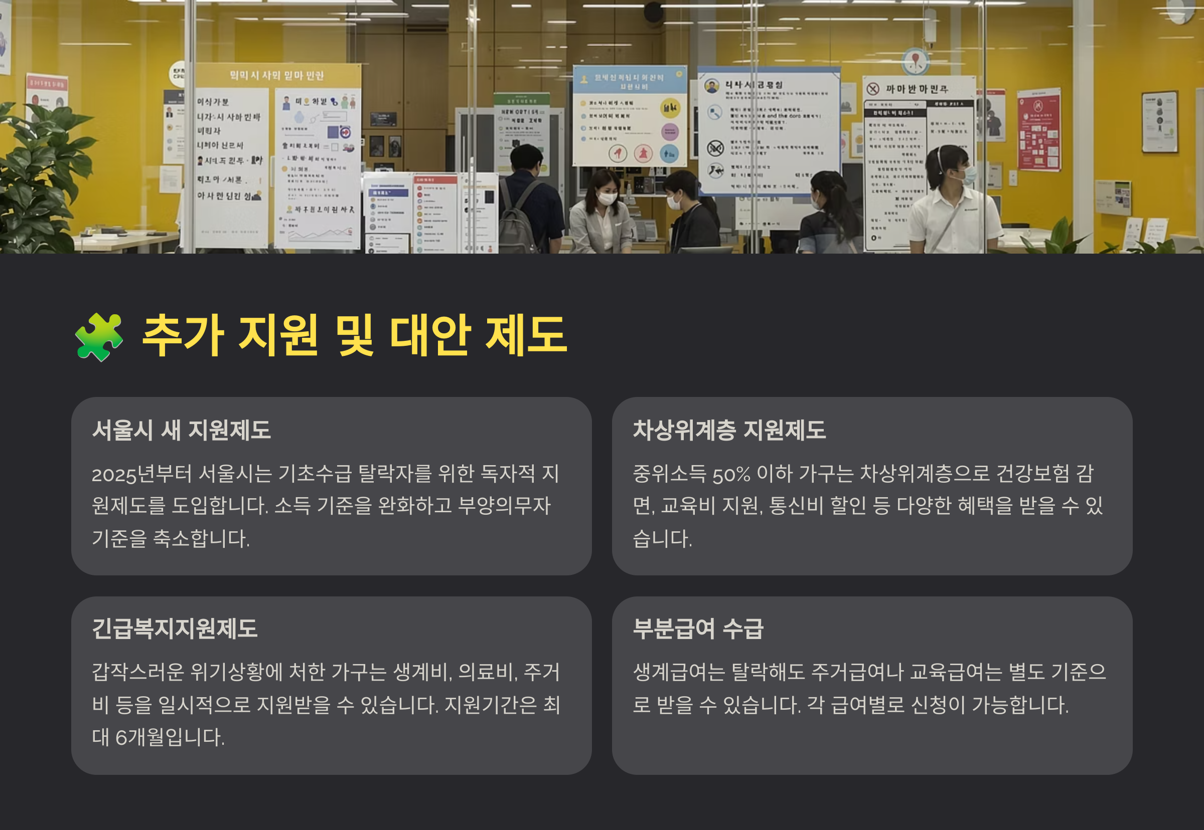 기초생활수급에서 탈락했다고 해서 모든 지원이 끊기는 건 아니에요. 아직도 이용할 수 있는 여러 가지 복지제도와 대안이 있답니다!