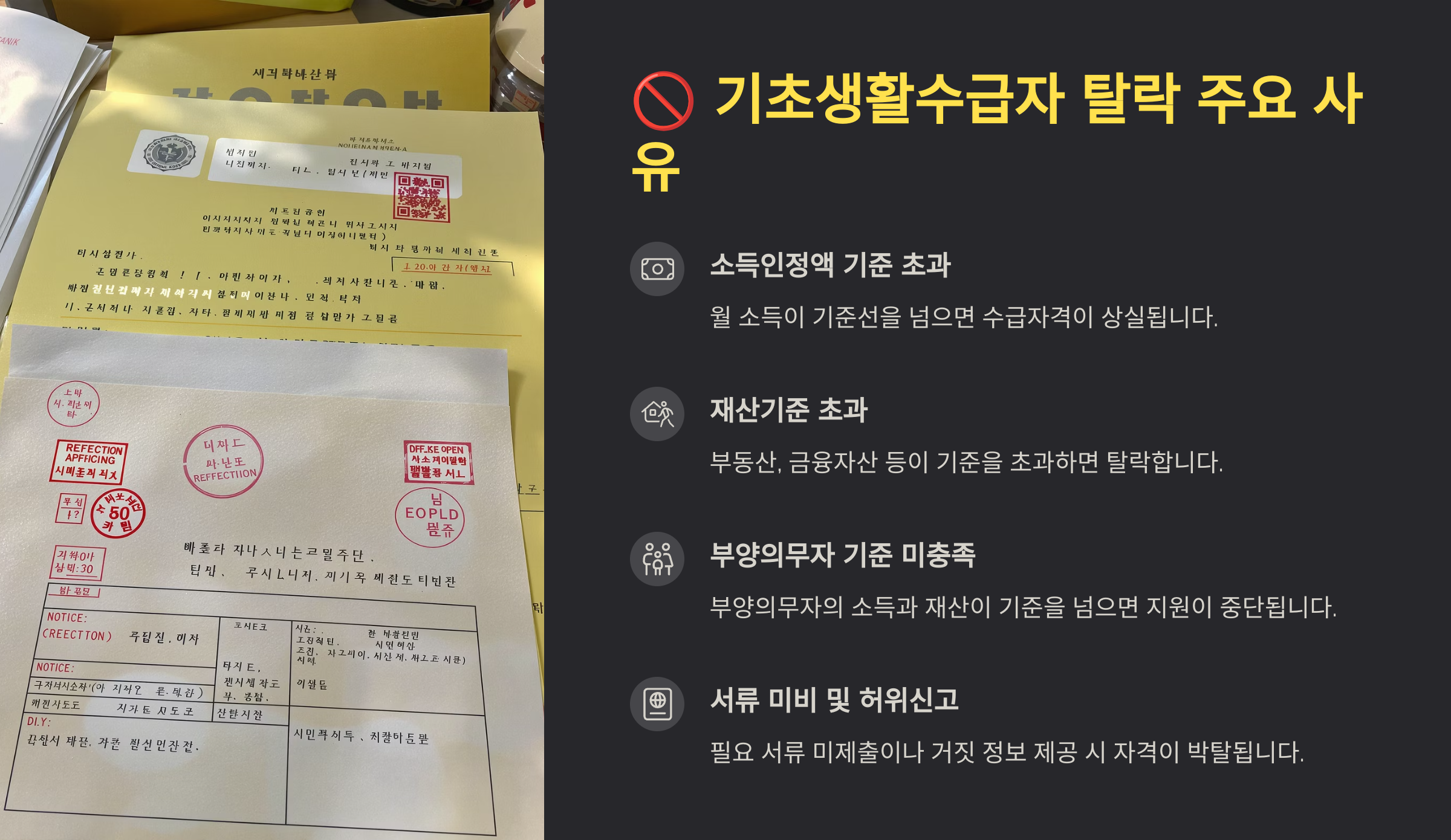 이번 글에서는 기초생활수급자에서 탈락하는 주요 사유를 구체적인 사례와 함께 알려드릴게요. 내가 생각했을 때, 이 글은 탈락한 이유를 파악하고 다시 도전할 수 있는 길잡이가 될 거예요.