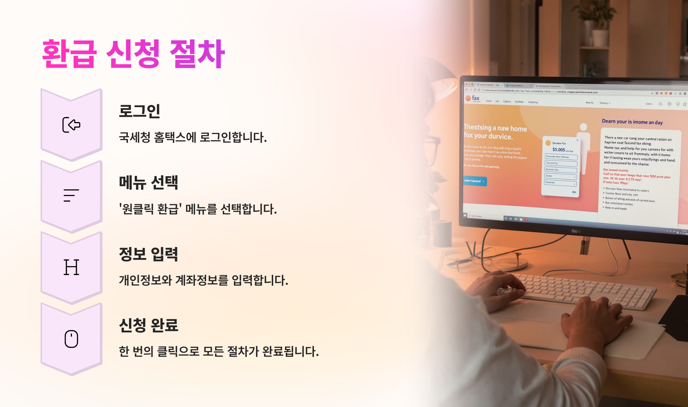 환급 절차는 정말 간단해요! 요즘은 인증서도 필요 없고, 휴대폰 본인인증만으로 대부분 처리할 수 있어서 누구나 쉽게 이용할 수 있답니다.