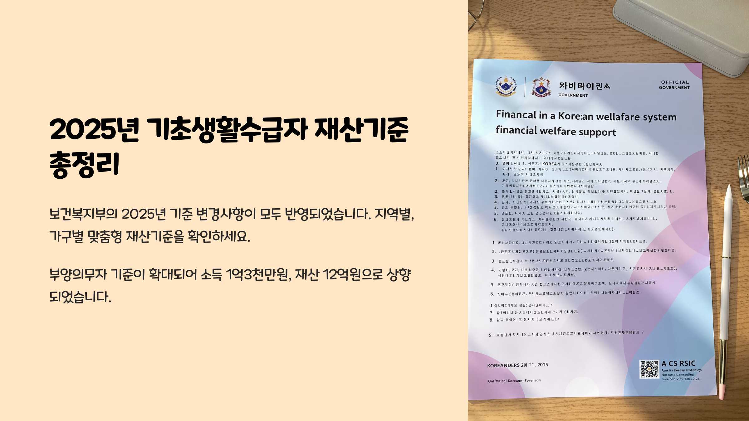 2025년 기준으로 재산 산정 방식과 지역별 차이, 유형별 기준이 조금씩 바뀌면서 많은 분들이 헷갈려하시는데요. 그래서 이번 글에서는 재산기준의 모든 것을 총정리해봤어요! 궁금했던 내용 모두 정리되어 있으니 천천히 살펴보세요. 👀