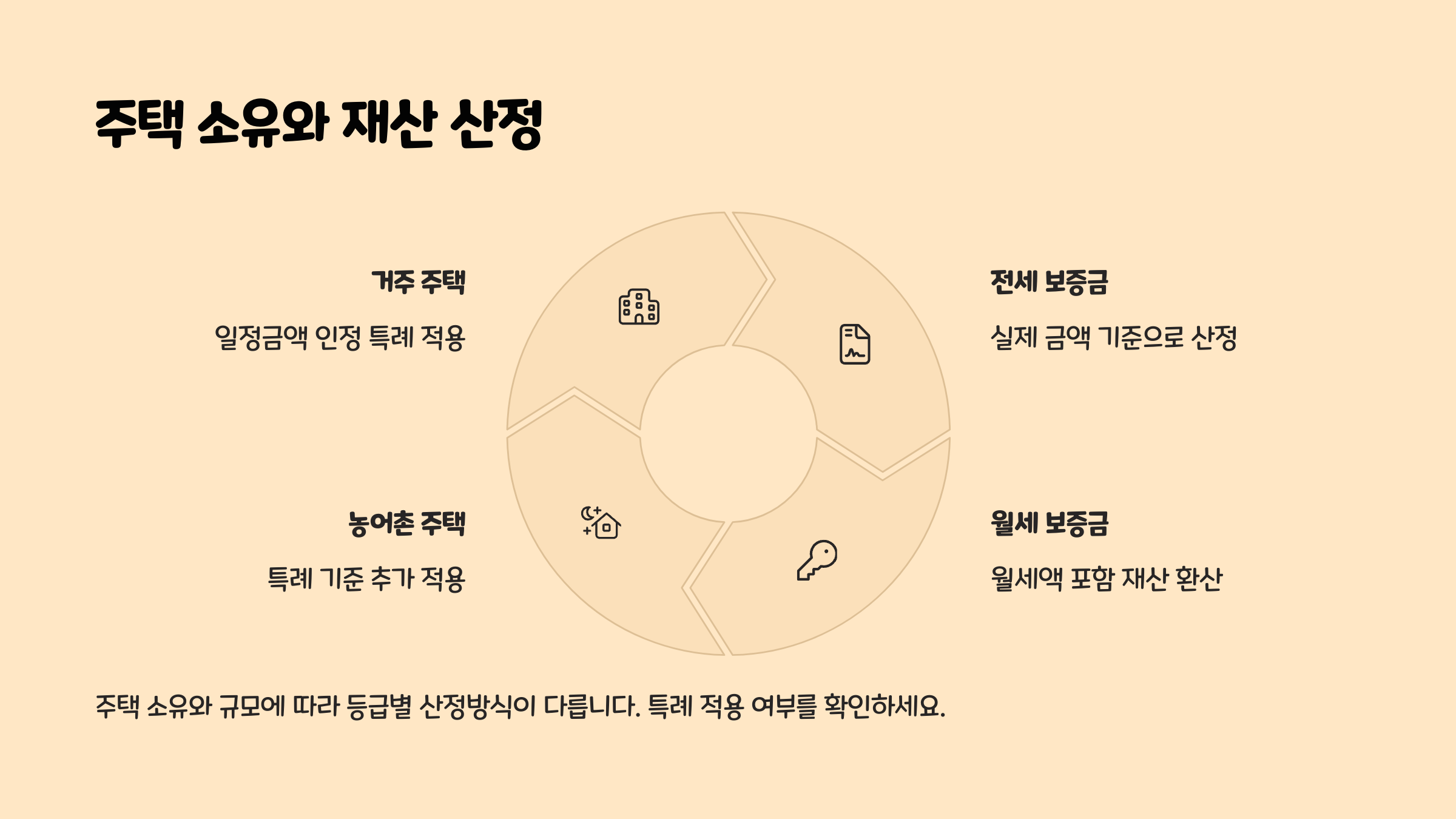 2025년 기준, 1억 6천만 원 이하의 주택은 재산으로 환산하더라도 일부 감면이 돼요. 또한 전세 세입자일 경우 보증금이 재산으로 포함되지만, 생계 필요 범위 내에선 인정되기도 해요.