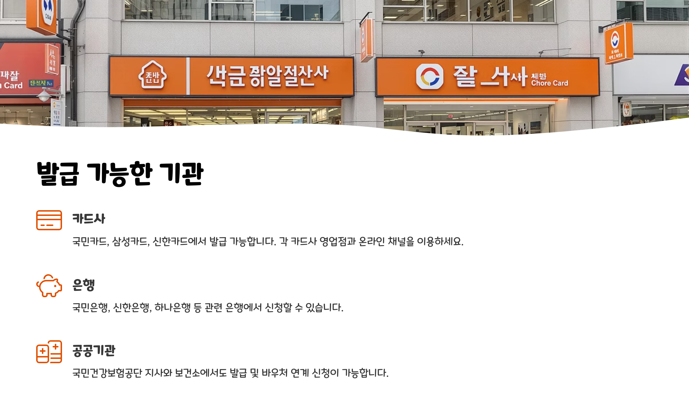 국민행복카드는 여러 금융사와 정부기관에서 발급 가능해요.