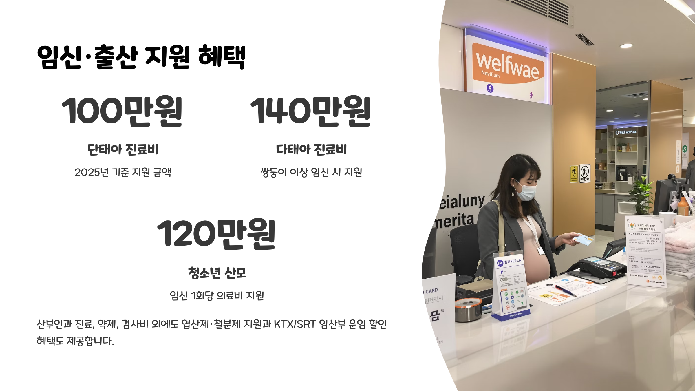국민행복카드의 대표적인 기능 중 하나는 바로 임신과 출산에 관련된 진료비를 지원하는 혜택이에요. 국가가 정한 일정 금액의 바우처가 카드에 충전돼서 지정 의료기관에서 사용할 수 있어요. 2025년 기준으로 단태아는 최대 100만원, 다태아는 최대 140만원까지 지원돼요.