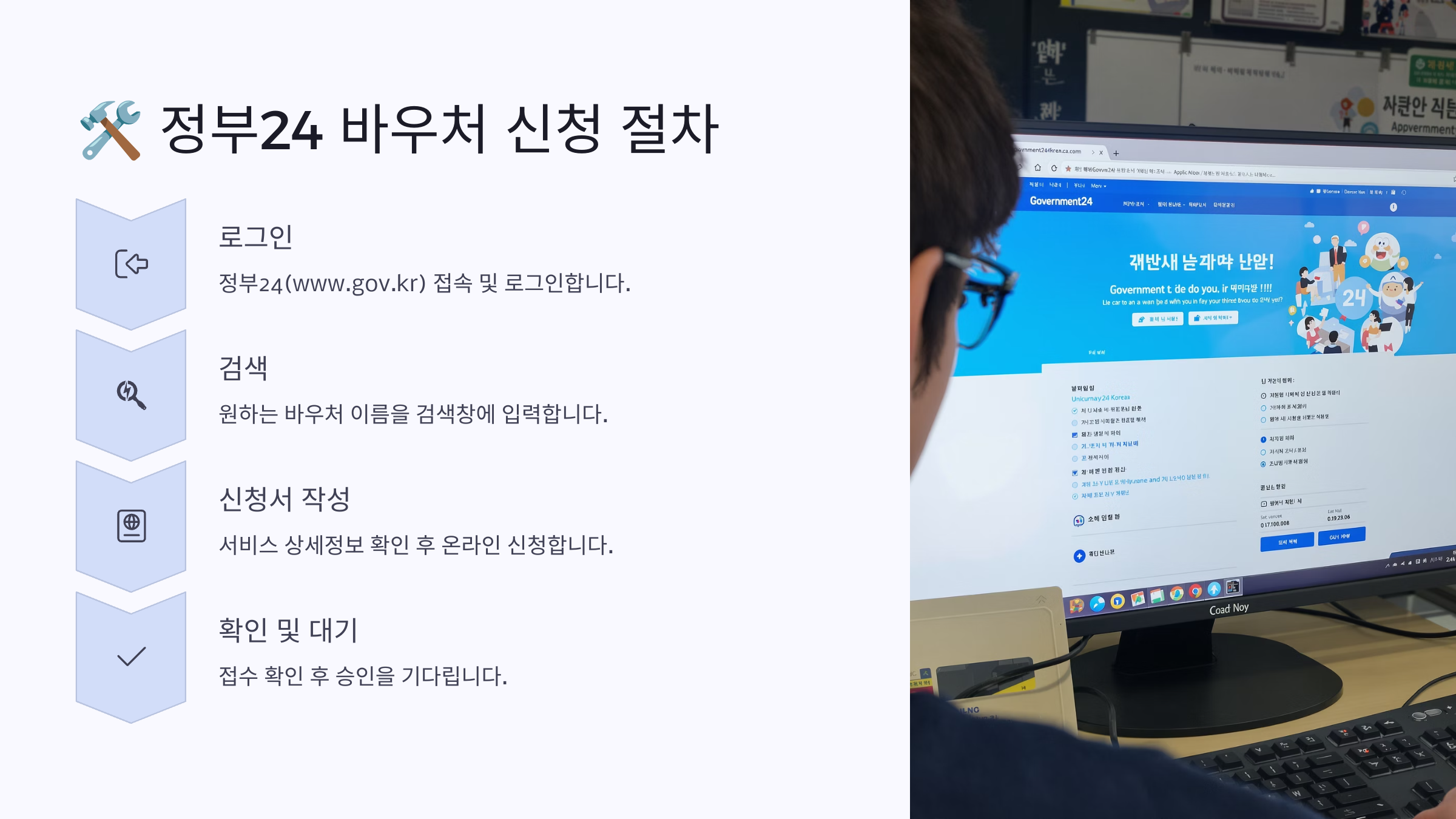 그럼 지금부터 정부24에서 바우처 신청하는 가장 쉬운 방법을 하나씩 자세히 소개할게요. 👇