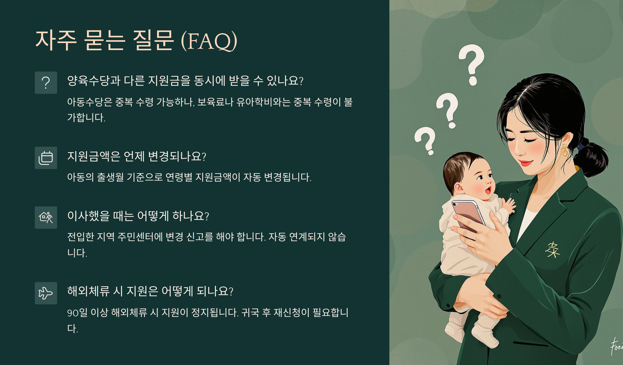 부모 입장에서는 양육수당이 단지 현금 지원이 아니라, '복지 포털'의 입구가 되는 제도라고 이해하면 좋아요.