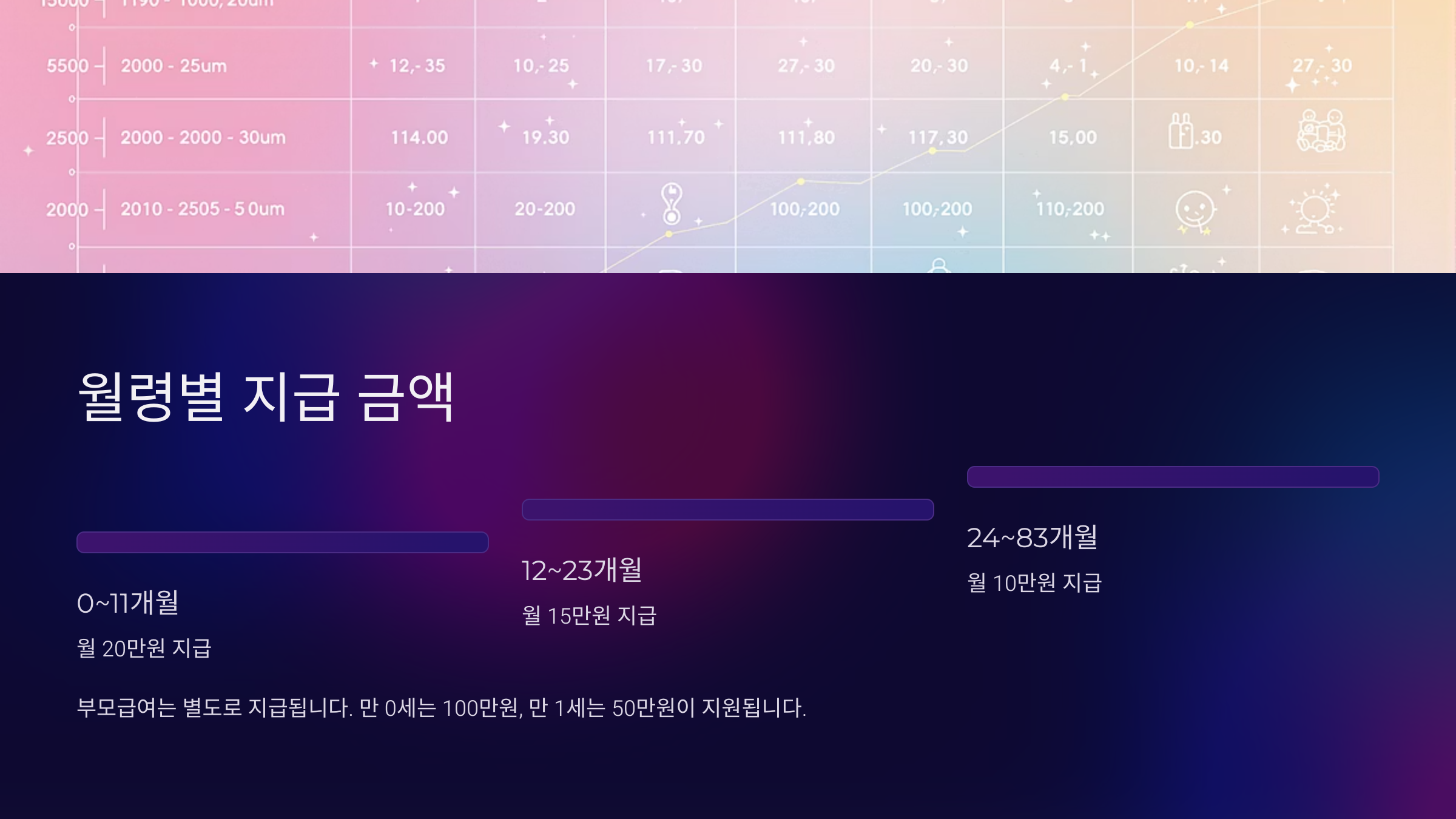 | 자녀 수 | 월령별 | 총 수당 금액 |