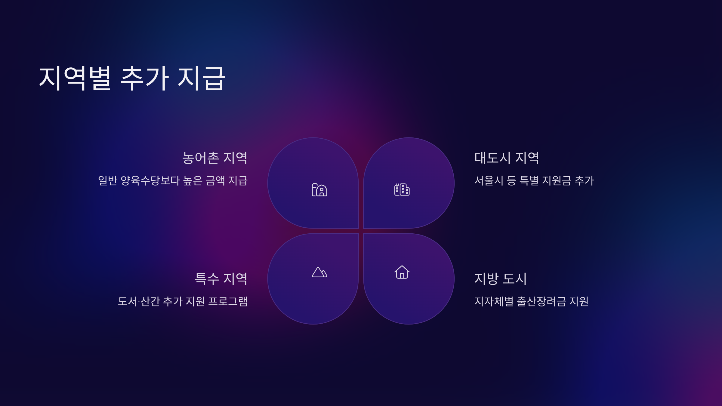 양육수당은 중앙정부가 지급하는 기본 수당 외에도, 지역 지자체에서 별도로 지급하는 '추가 양육수당'이 있어요. 이건 지역마다 정책과 예산이 달라서 같은 나이, 같은 상황이어도 지역에 따라 더 많이 받을 수 있다는 뜻이에요.