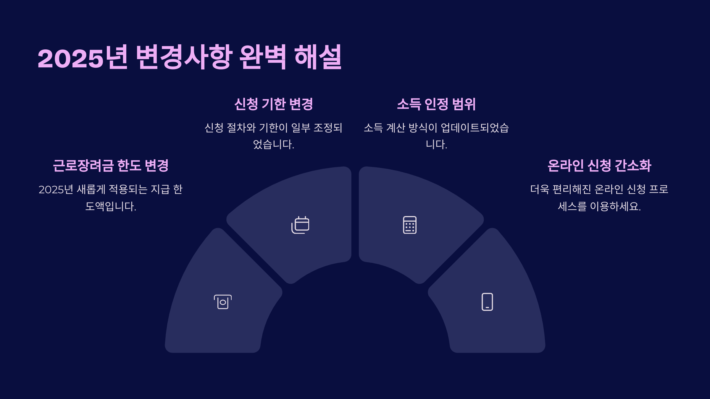 2025년에는 근로·자녀 장려금 제도에 몇 가지 중요한 변화가 생겼어요. 첫째는 '재산 기준 완화'예요. 기존 2억 원에서 2억 2천만 원으로 올라가면서, 더 많은 가구가 신청 대상이 되었죠.