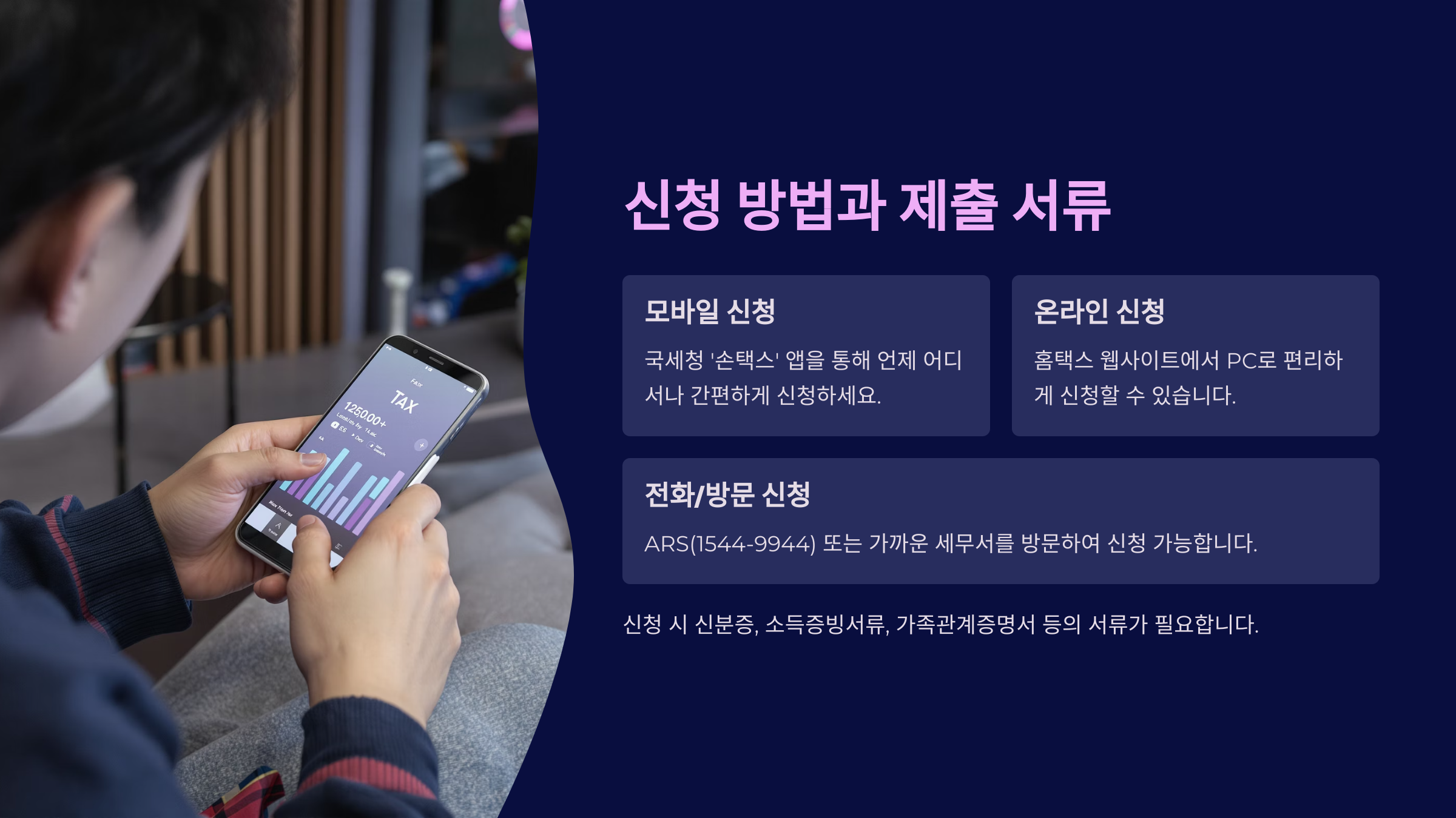 | 손택스(모바일) | 본인 인증 | 스마트폰으로 빠르게 신청 |