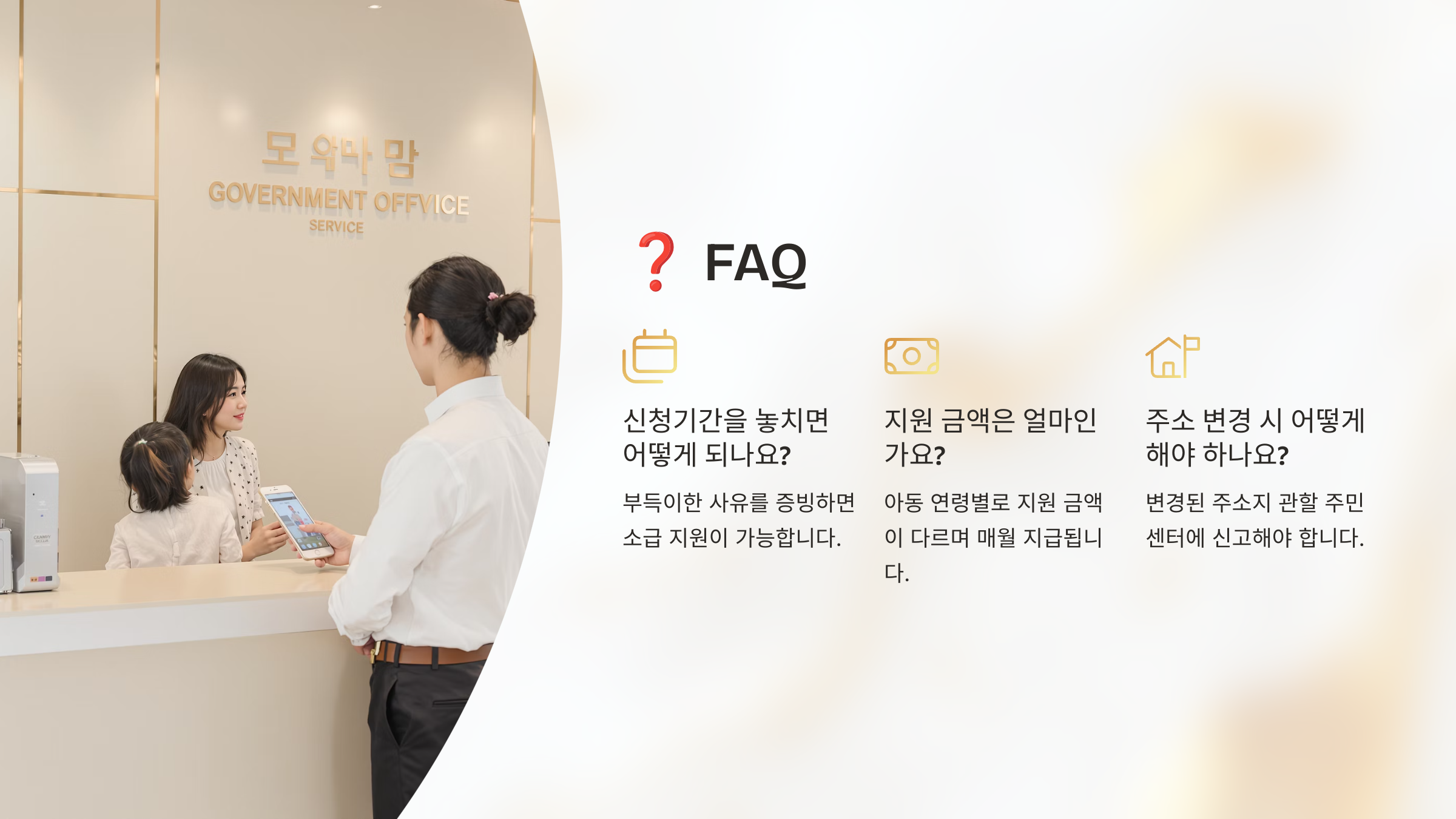 | 방문 신청 | 주민등록등본, 신분증, 통장 사본 | 현장 접수 후 바로 처리 |
