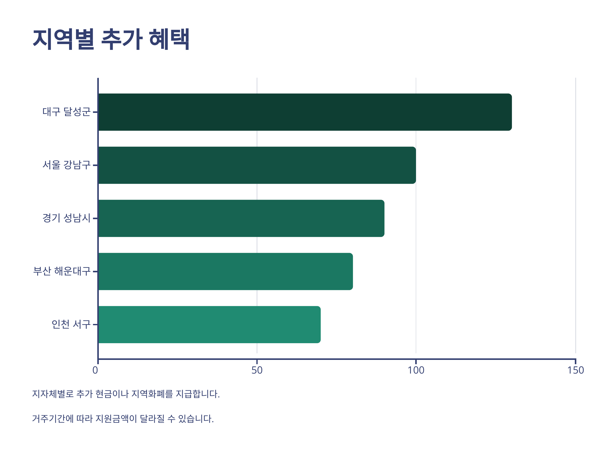 예를 들어 전남 해남군은 둘째 출산 시 300만 원 이상 지원하고, 경북 의성군은 출산축하금 외에도 분유, 기저귀 쿠폰과 육아돌봄서비스까지 함께 제공해줘요. 이처럼 지역별 맞춤형 혜택은 다양한 형태로 이뤄지고 있어요.