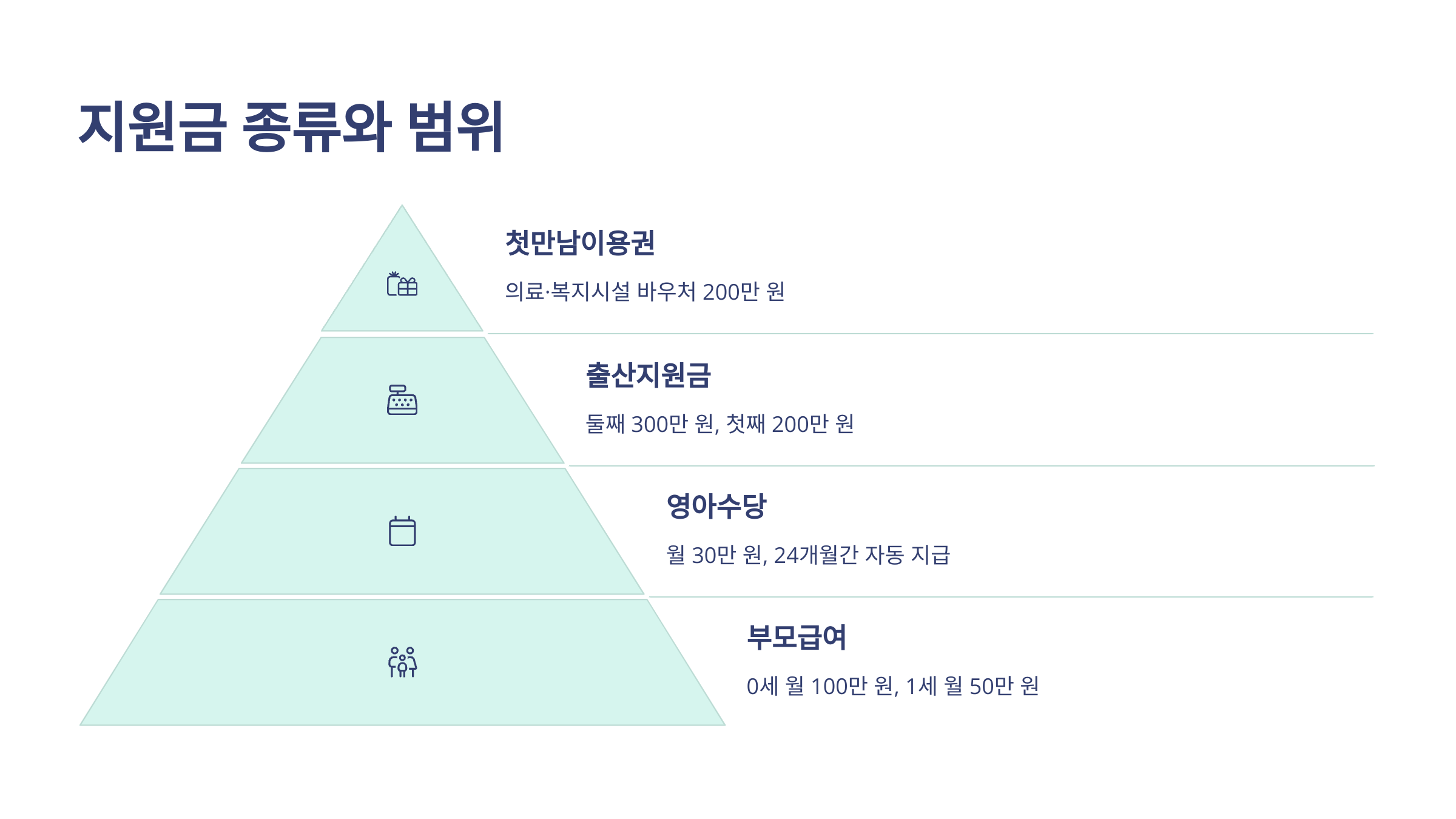 | 지급 방식 | 현금, 바우처, 출산용품 |