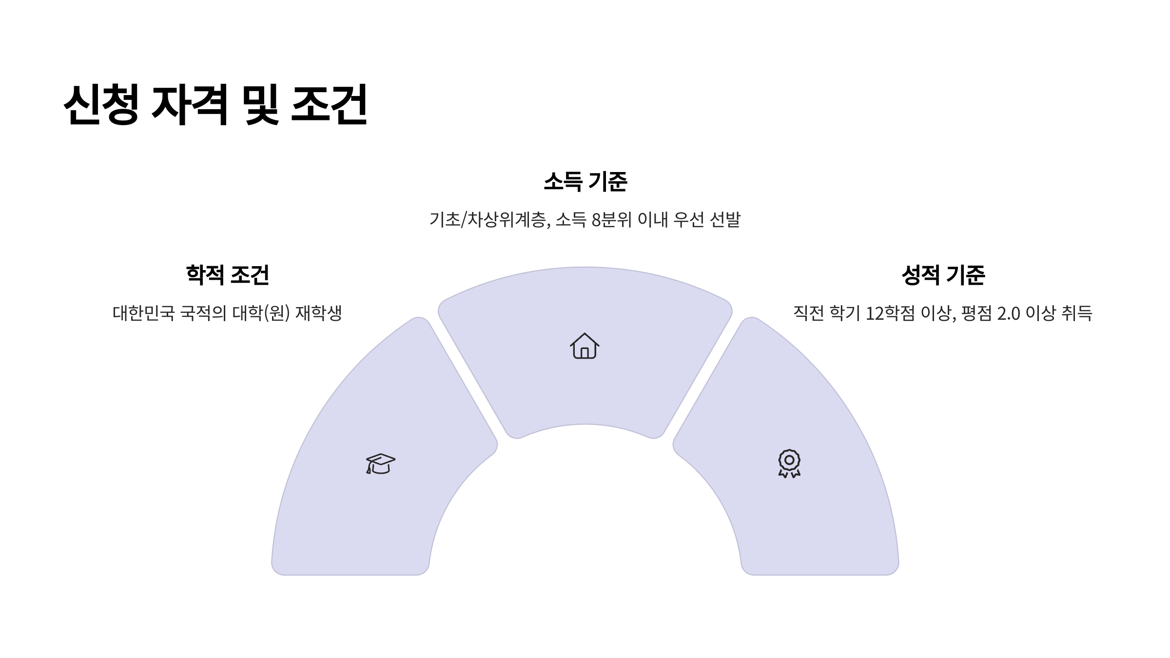 가장 기본적인 조건은 대한민국 국적을 가진 국내 대학 재학생이어야 해요. 휴학생, 졸업 유예생, 수료생은 신청이 불가능해요. 단, 복학 예정자는 복학 후 신청할 수 있어요.