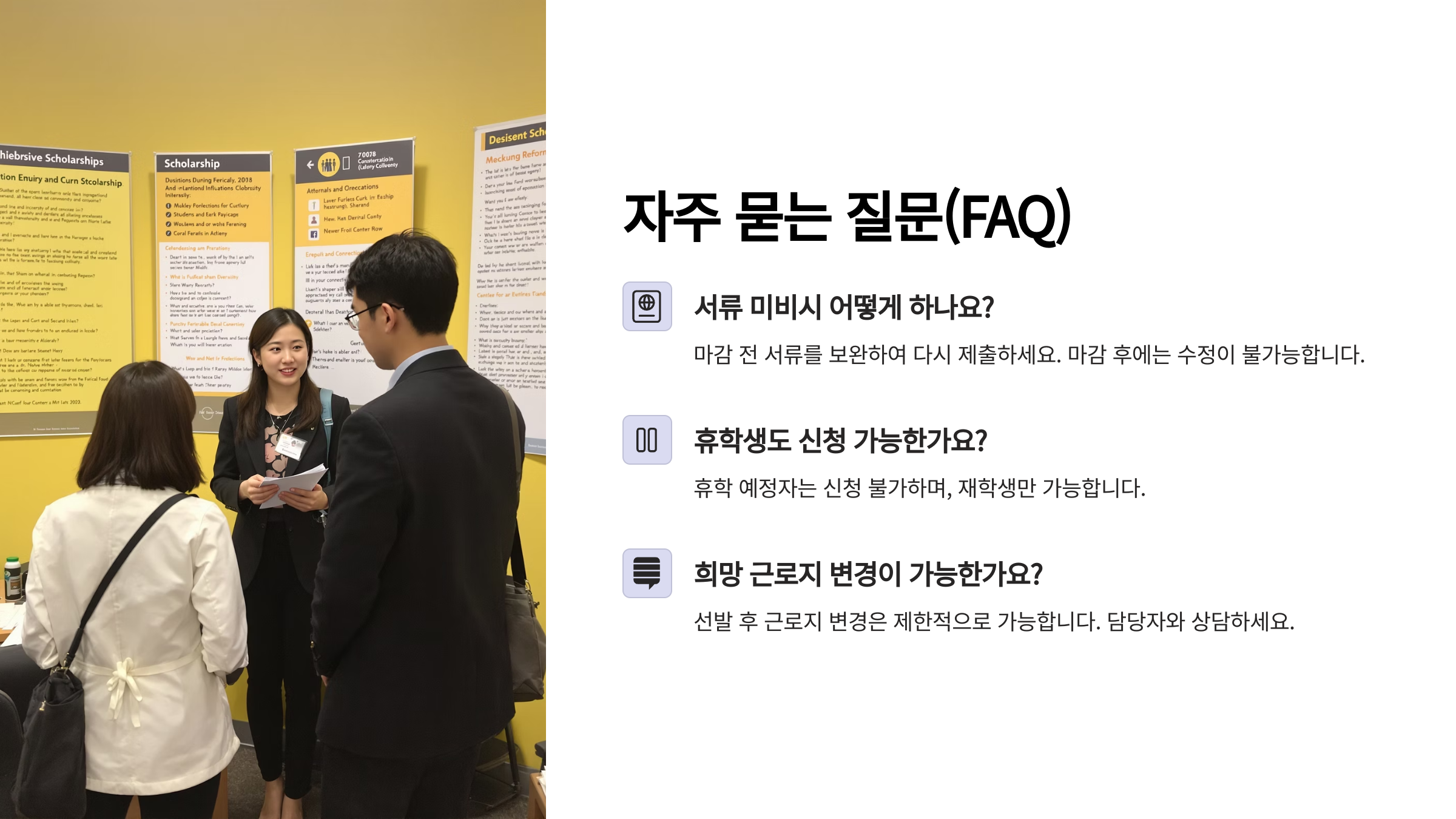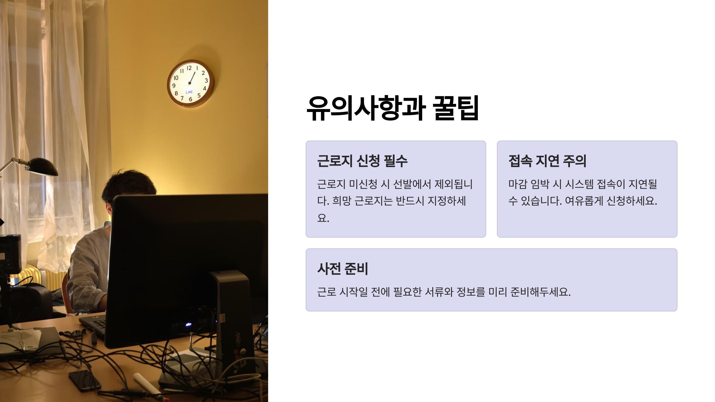 따라서 전략적으로 ‘희망 근로지 선택’, ‘성적 유지’, ‘빠른 신청’ 3가지를 챙기면 합격 확률이 훨씬 높아져요.