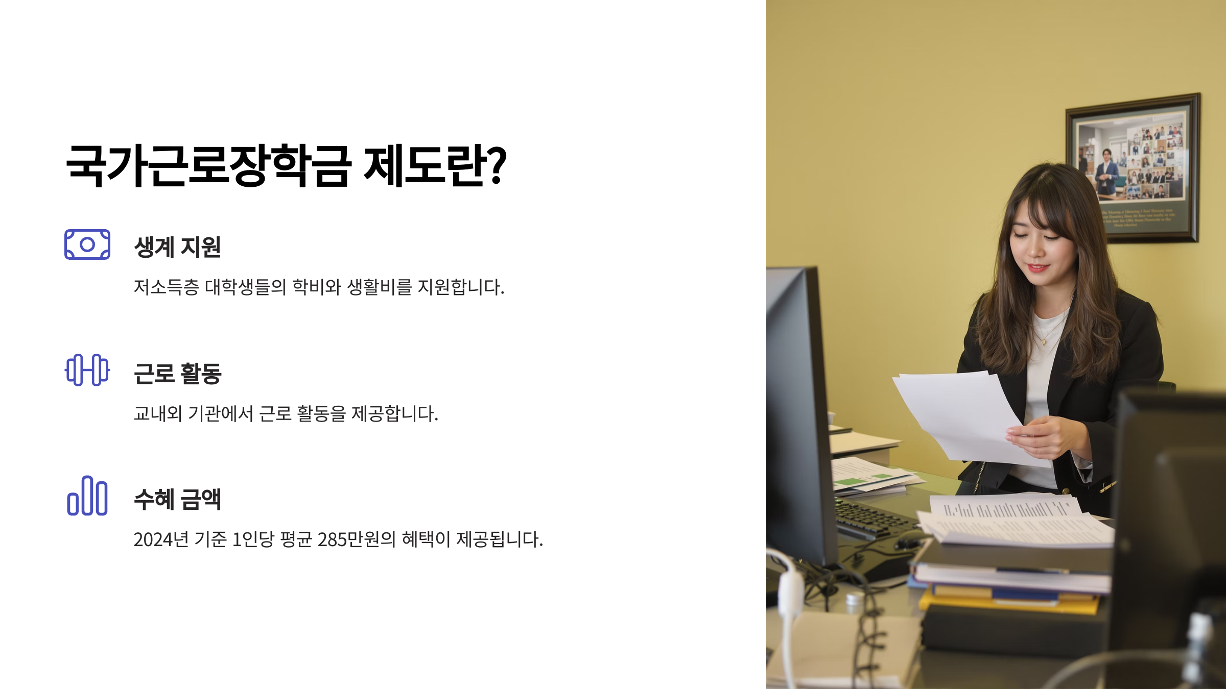 국가근로장학금은 대학생들이 학업을 유지하면서 동시에 소득 활동을 할 수 있도록 도와주는 매우 실질적인 제도예요. 단순한 장학금이 아니라, 근로를 통해 스스로의 생활을 책임지고 경력을 쌓을 수 있는 기회를 제공하죠.