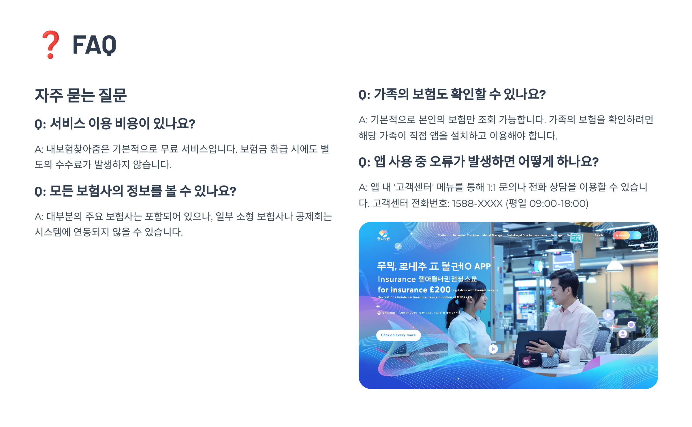 | 빠른 조회 | 3분 안에 보험 내역 확인 가능 |