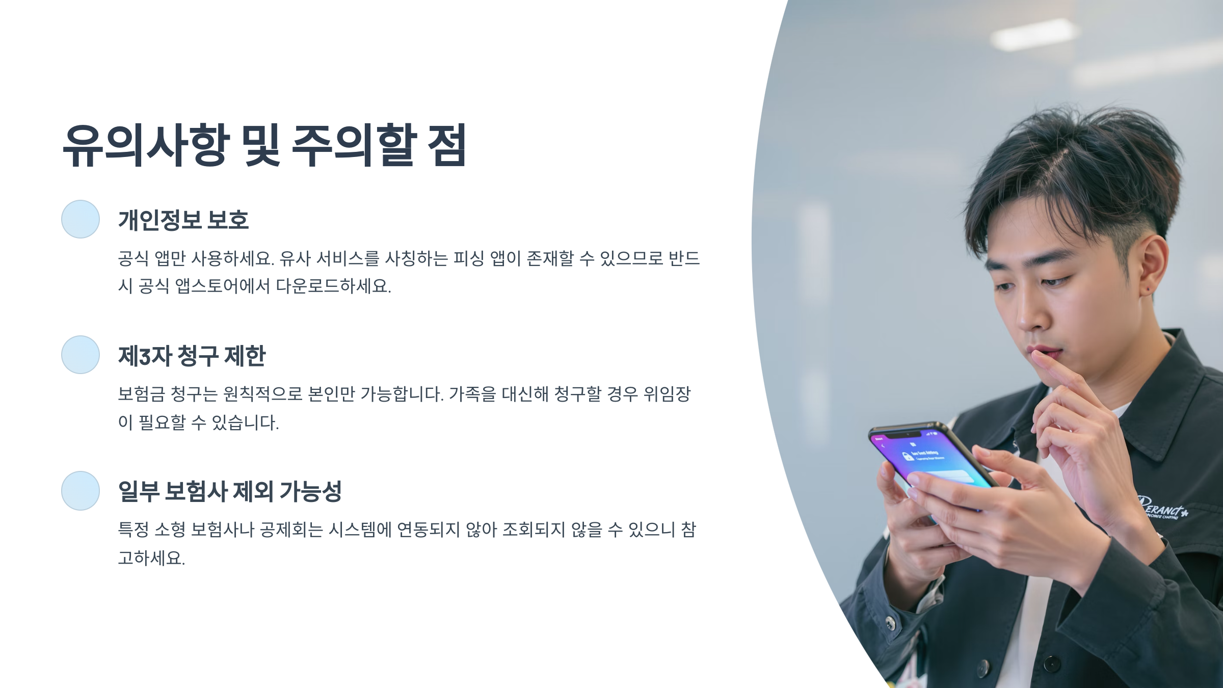 내보험찾아줌은 정말 유용한 서비스지만 몇 가지 알아두면 좋은 주의사항이 있어요. 이 부분도 놓치면 손해니까 꼼꼼히 체크해보세요.