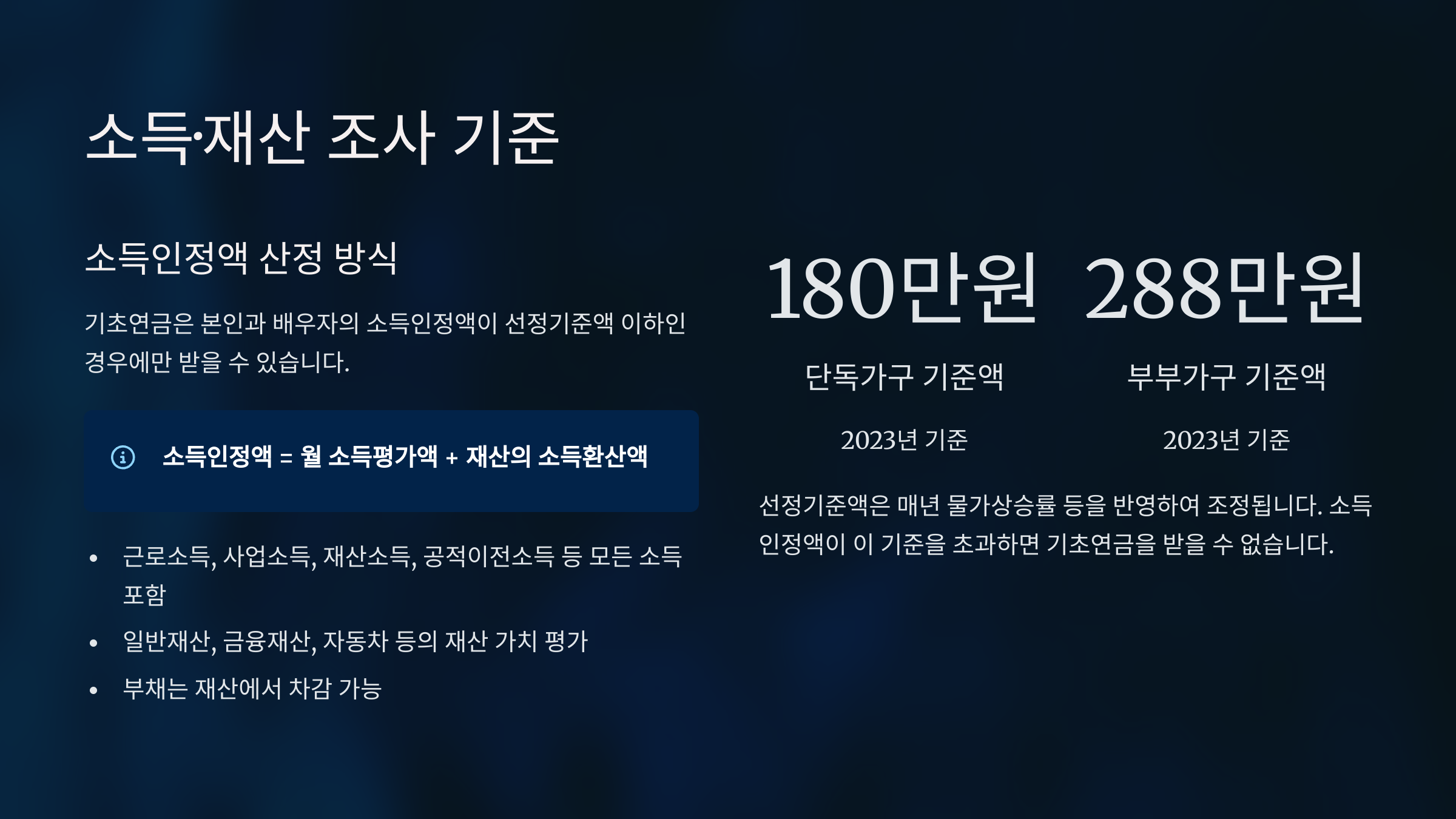💰 소득·재산 조사 기준