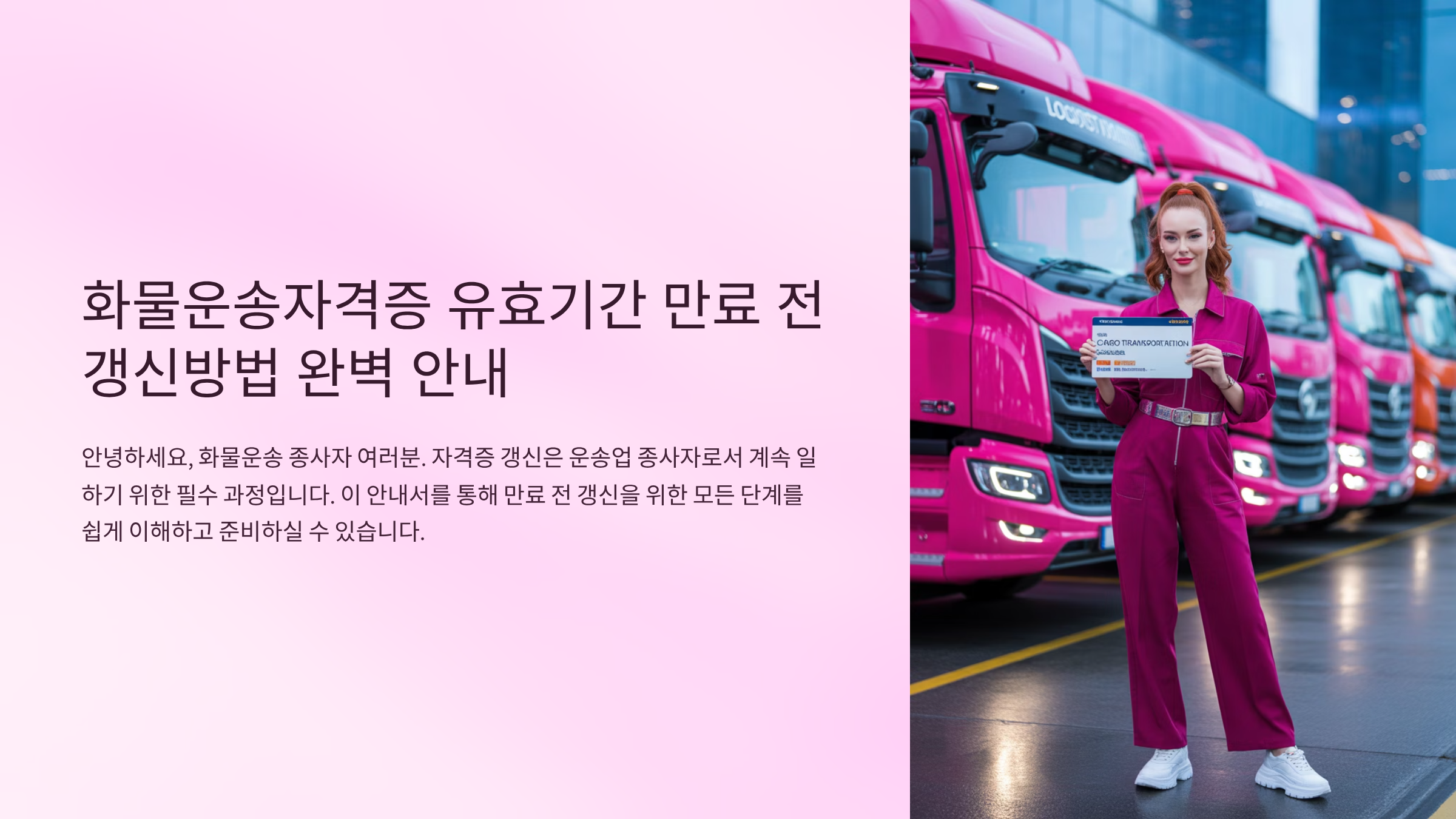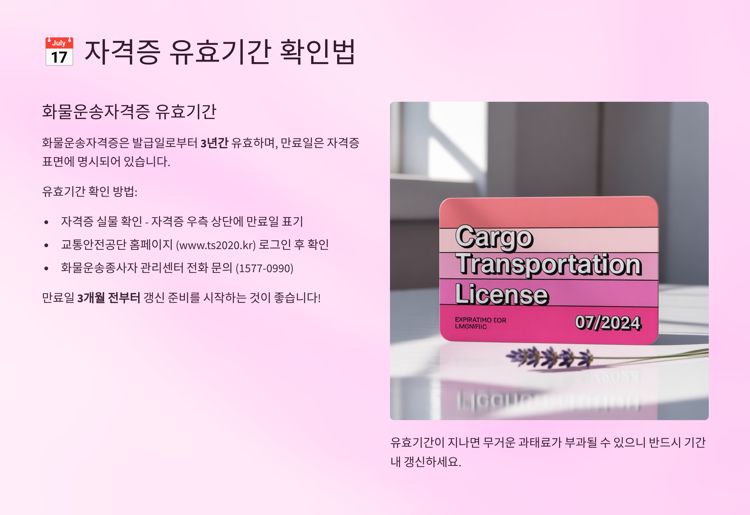 화물운송자격증은 운수업 종사자라면 반드시 갖추어야 할 필수 자격증이에요. 이 자격증은 유효기간이 있기 때문에 만료 전에 미리 갱신해야 불이익을 피할 수 있답니다.