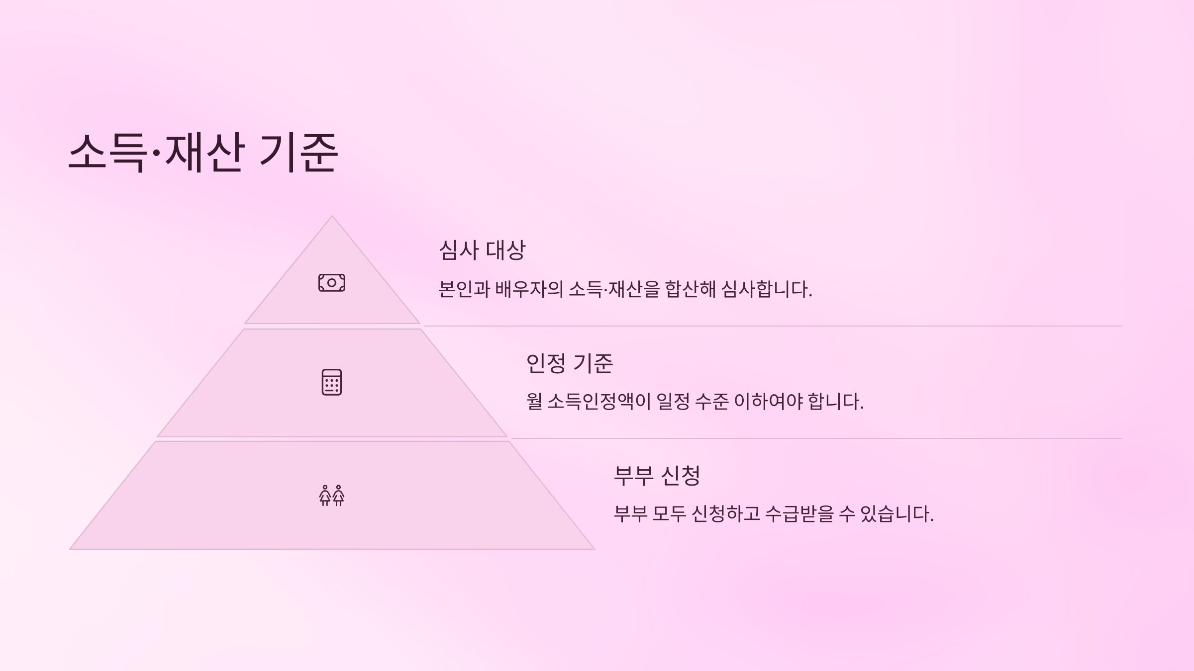 | 대상 | 만 65세 이상 + 소득·재산 기준 충족 |