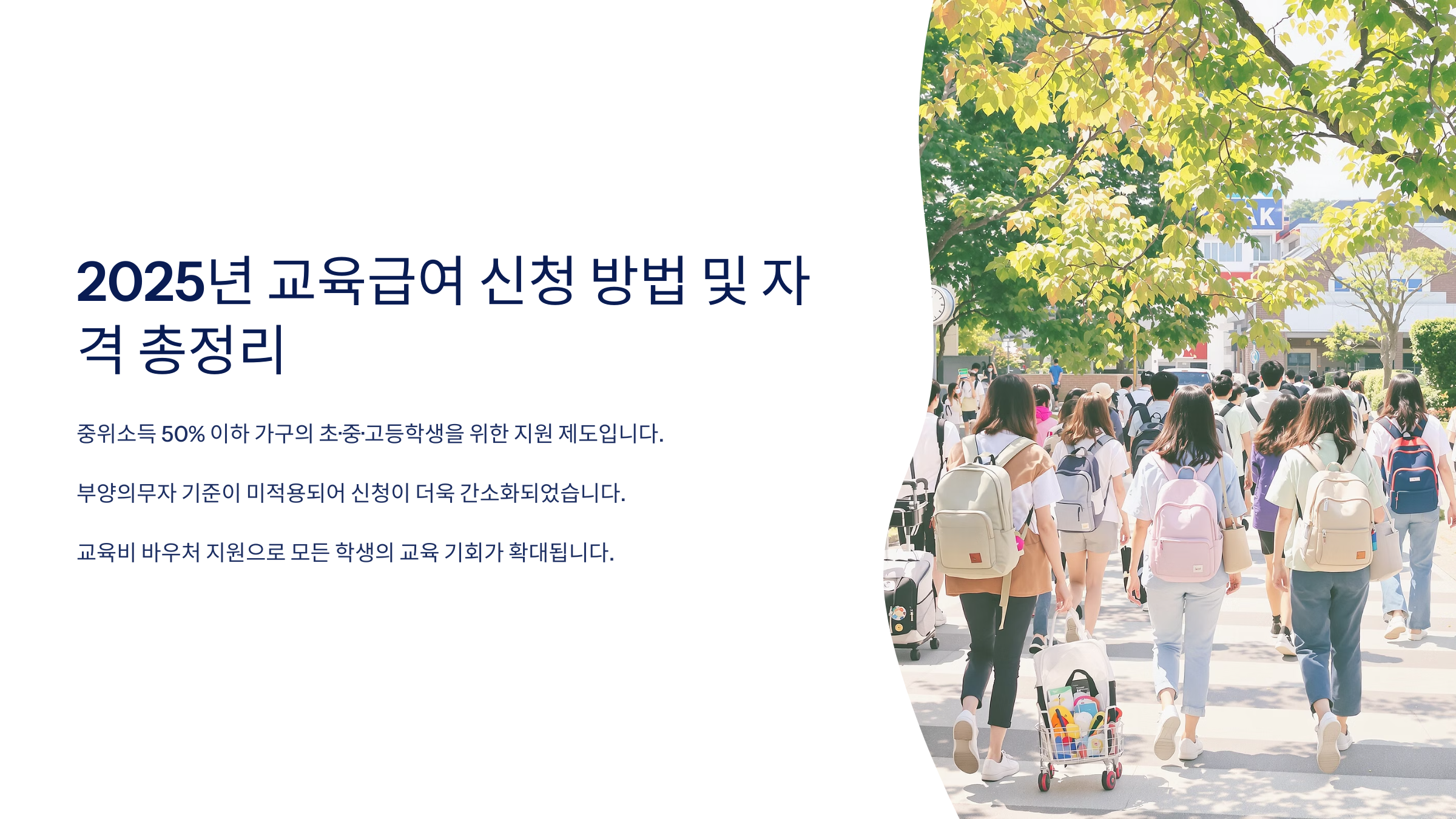 2025년에는 교육급여 기준이 확대되었고, 중위소득 50% 이하 가구까지 지원받을 수 있도록 문턱이 낮아졌어요. 👏