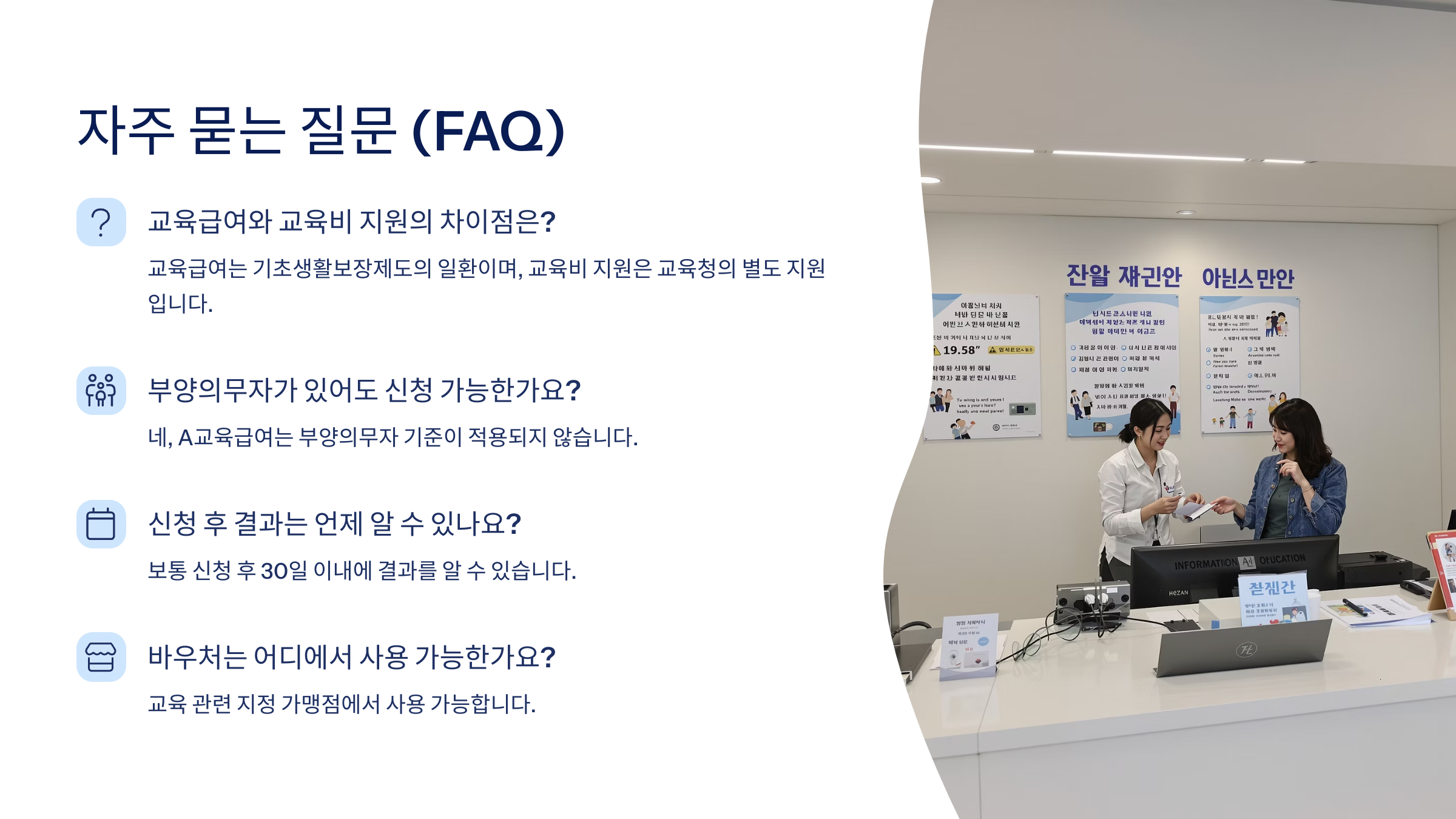 A8. 네! 교육급여는 연중 수시로 신청 가능해요. 지금 바로 시도해보세요!