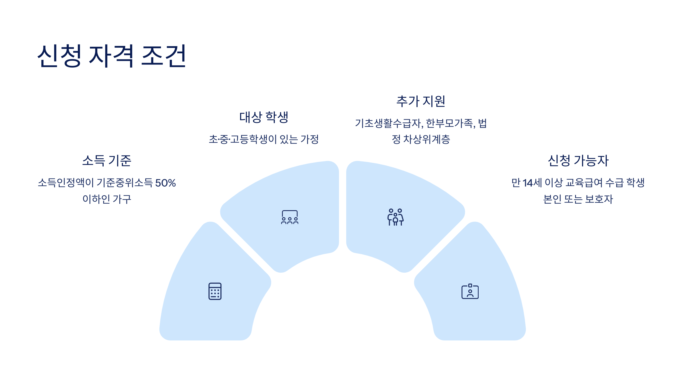 또한 학교에 재학 중인 학생이 있어야 하며, 반드시 본인이 아닌 가구주나 보호자가 신청하는 게 원칙이에요.