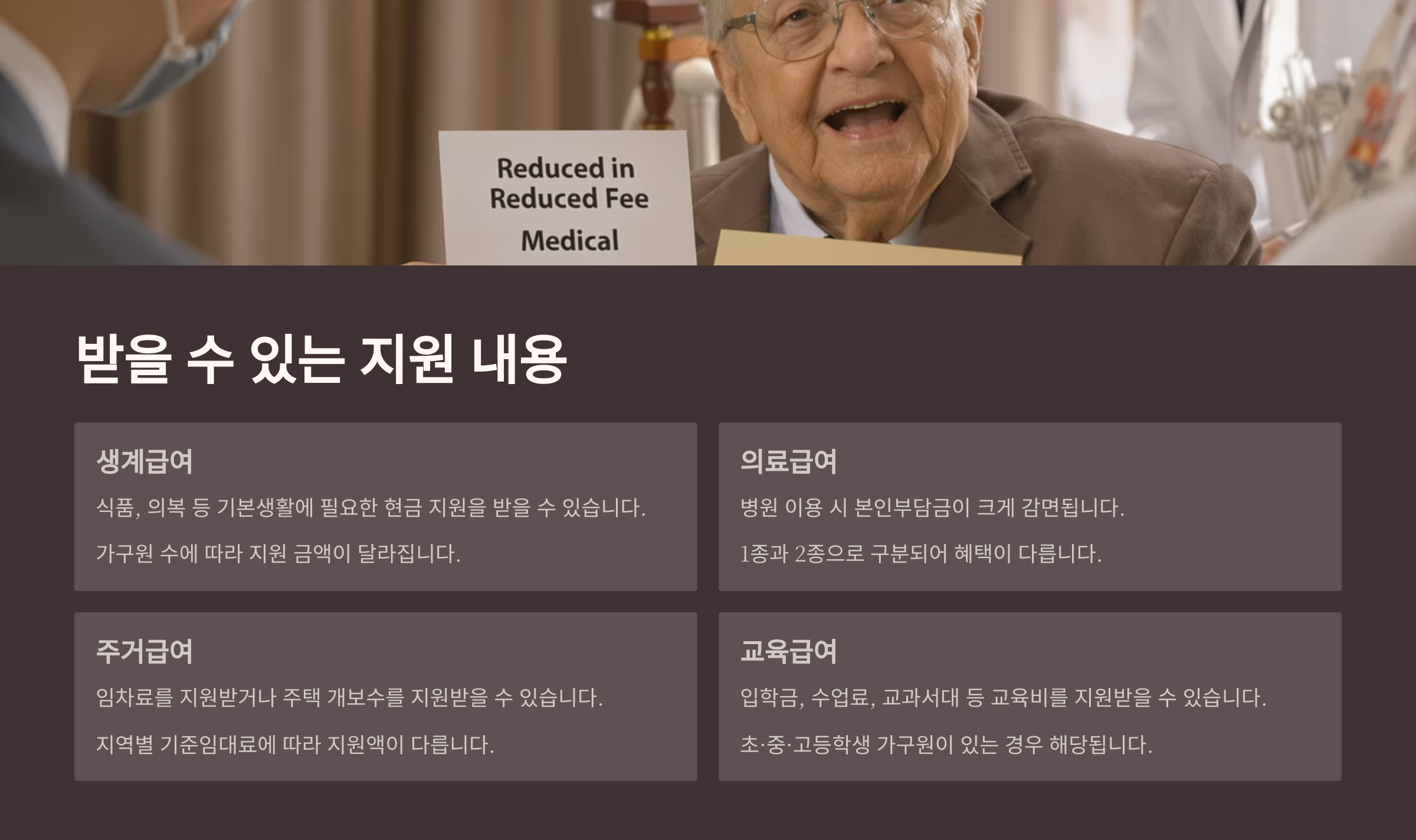 💎 수급자라고 해서 단순한 현금만 받는 게 아니에요. 병원비부터 집세, 아이 교육, 장례비, 심지어 일자리까지 연결되는 제도가 바로 기초생활보장이에요!
